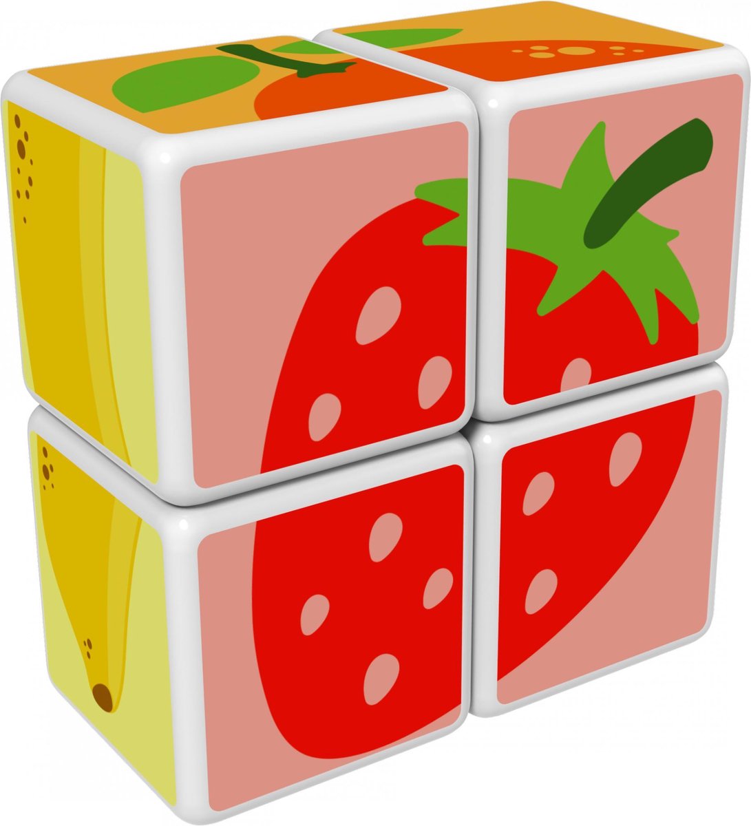 De Geomag Magicube Fruit is een magnetische bouwset voor peuters en kleuters. De set bevat 4 magnetische blokken en 3 dubbelzijdige kaarten. Op de blokken staan stukjes fruit zoals aardbei, appel, druif en banaan. Met de kaarten kunnen kinderen tot 6 verschillende fruitfiguren bouwen.