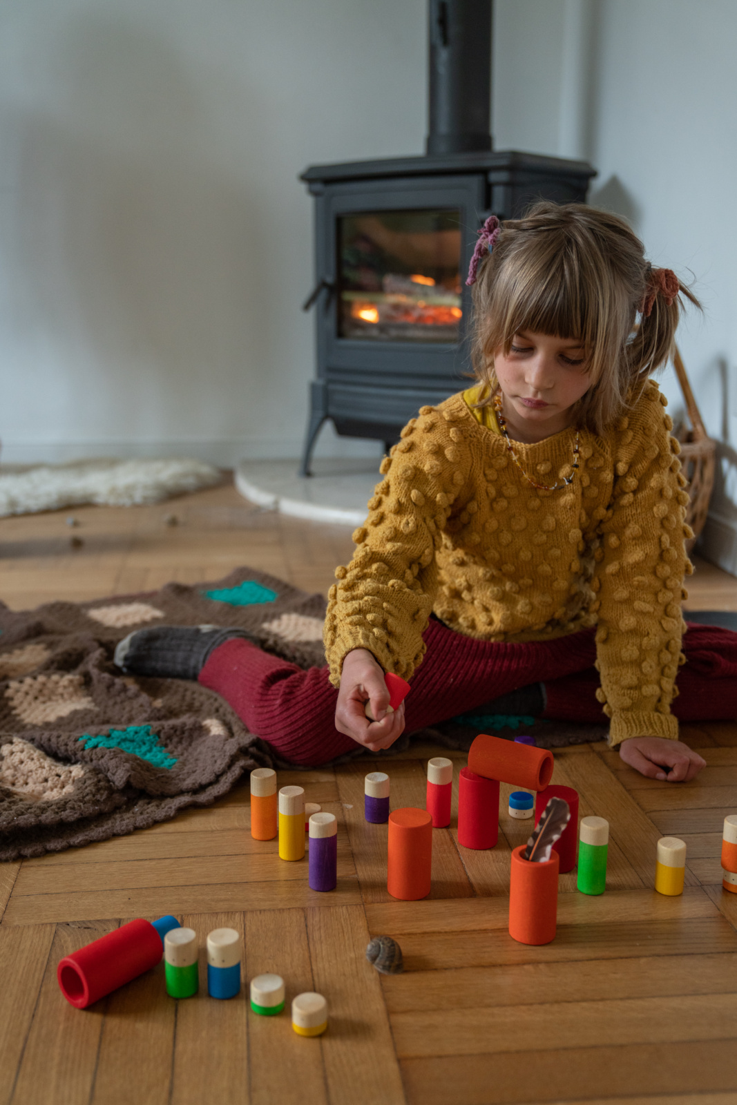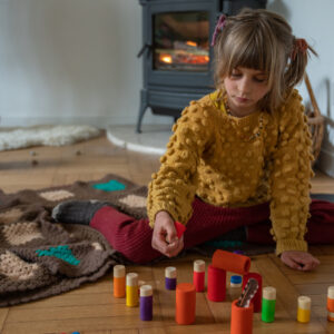 Een van de twee zusjes van onze befaamde Lola set, bestaande uit 36 stuks in onze 6 basiskleuren. Lo is open en vrolijk van aard en de perfecte metgezel voor elke speeltijd. Ook perfect voor activiteiten die divergent denken, oog-handmatige en logisch-wiskundige ontwikkeling stimuleren.