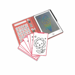 De Kidywolf KidyDraw Tekentablet Mini – Kawaii brengt de vrolijke, schattige wereld van Kawaii tot leven. Dit compacte LCD-tekentablet bevat 30 unieke Kawaii-sjablonen met vrolijke figuurtjes, snoepjes, diertjes en andere speelse ontwerpen. Kinderen vanaf 4 jaar kunnen eindeloos tekenen, wissen en opnieuw beginnen – zonder papier of rommel.