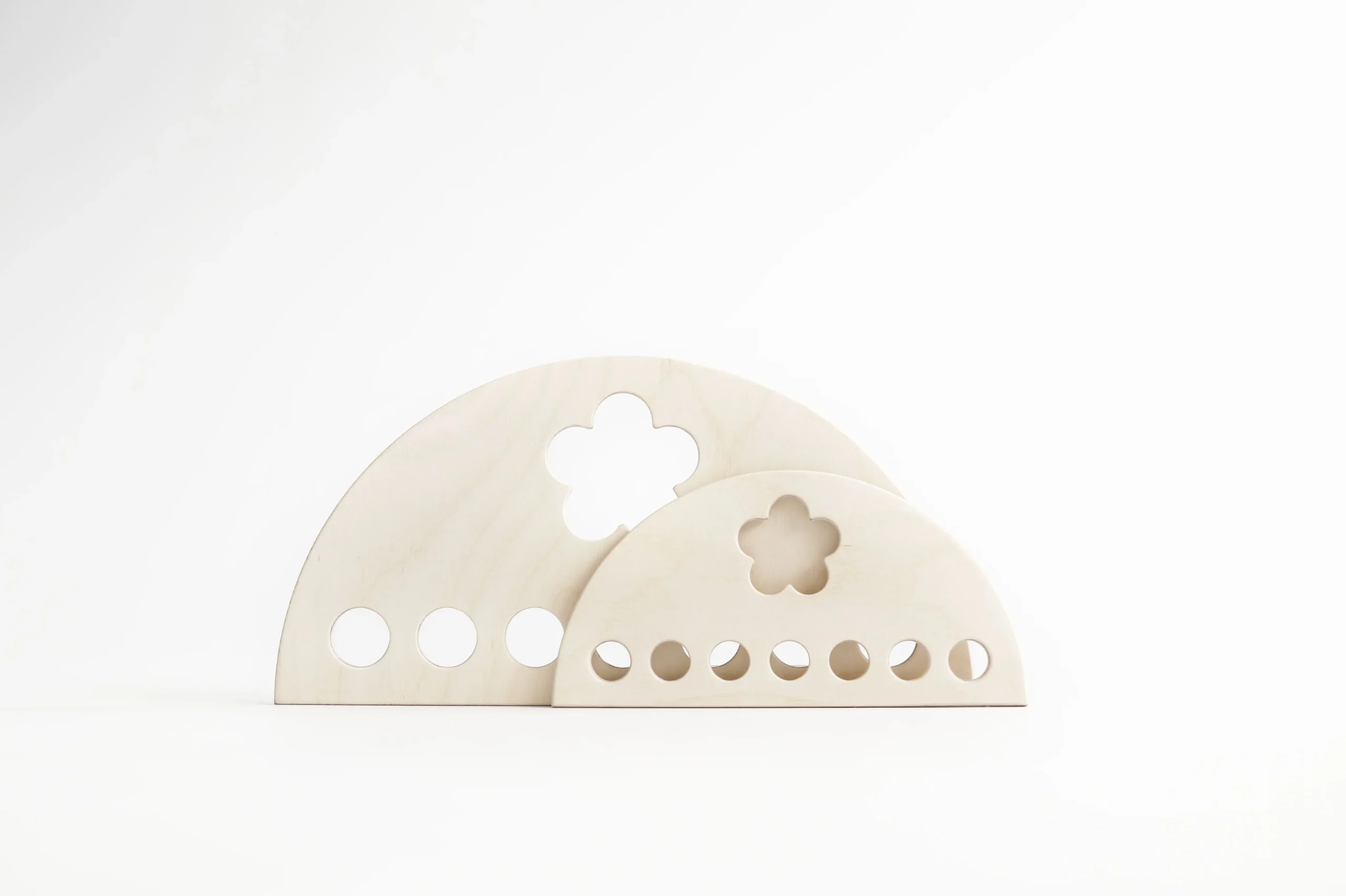 Presenteer je speeldoeken op een mooie en praktische manier met deze houten display van Laura’s Play Cotton. Deze kleine, halfronde houder is speciaal ontworpen voor het opbergen en uitstallen van speeldoeken van 50 x 50 cm. De speelse uitsnede in de vorm van een bloem geeft een extra speels accent.