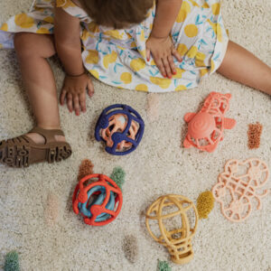 Multifunctioneel speelgoed – bijtring, badspeeltje en open einde speelgoed in één.