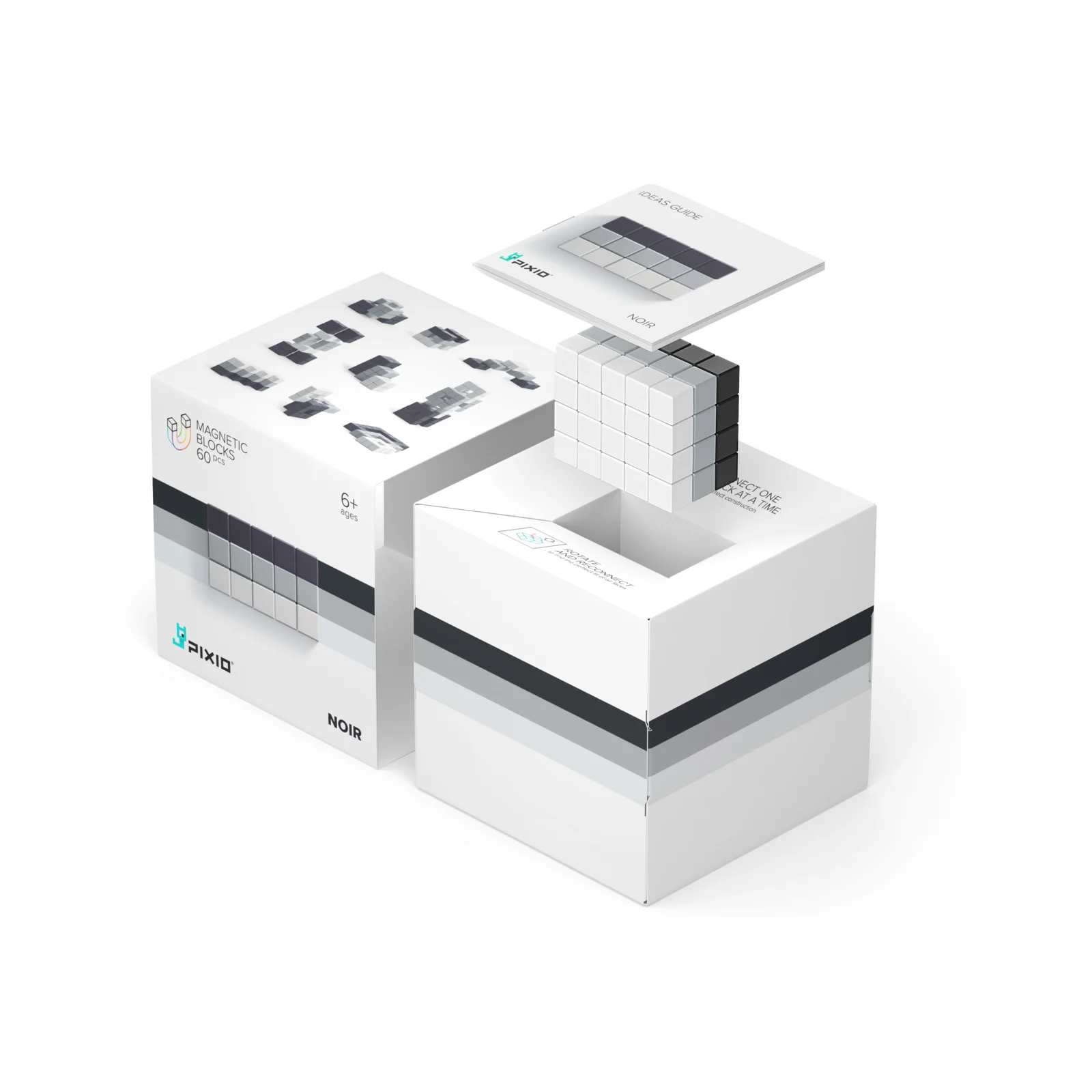 Onze PIXIO® NOIR set is net zo stijlvol als zwart-witfotografie, met de contrastrijke persoonlijkheid van de hoofdrolspelers van dit filmgenre. PIXIO® NOIR heeft PIXIO-blokken in zwart, wit en grijs. Ze laten je elke abstracte creatie transformeren in een filosofische metafoor. Met achromatische kleurencombinaties kunt u zich concentreren op de vorm van uw 3D-objecten en ze architectonisch perfectioneren. Gebruik levendige contrasten om extra visueel volume aan uw modellen toe te voegen, ze te accentueren en een spel van licht en schaduw te creëren. Het is nooit te laat om kleur toe te voegen. Combineer deze klassieke set met elke andere set uit de PIXIO® ABSTRACT-SERIE.