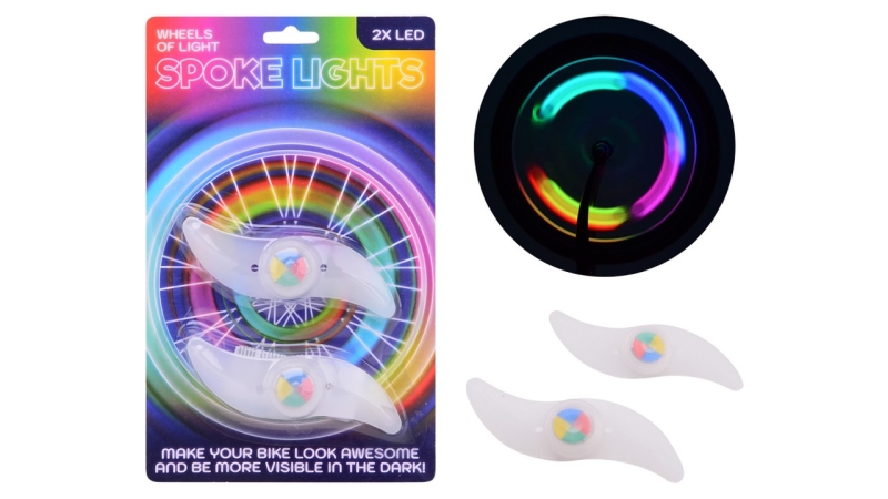 Deze LED-verlichting voor in de fietswielen is eenvoudig te bevestigen en geschikt voor dagelijks gebruik. De set bestaat uit 2 lampjes per kaart en wordt geleverd inclusief batterijen, zodat je meteen veilig op weg kunt.