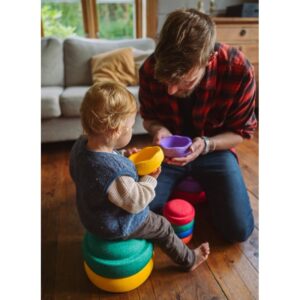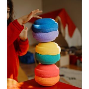 Daarnaast kunnen de Minis op verschillende manieren worden gestapeld, waardoor kinderen uitgedaagd worden om hun evenwicht te bewaren en hun creativiteit te gebruiken om unieke structuren te bouwen. Het stapelen van de Mini’s helpt kinderen bij het ontwikkelen van hun ruimtelijk inzicht en probleemoplossend vermogen. Of het nu gaat om het bouwen van torens, het maken van parcoursen of het creëren van kleurrijke patronen, de Rainbow-set biedt eindeloze mogelijkheden voor fantasierijk spel.
